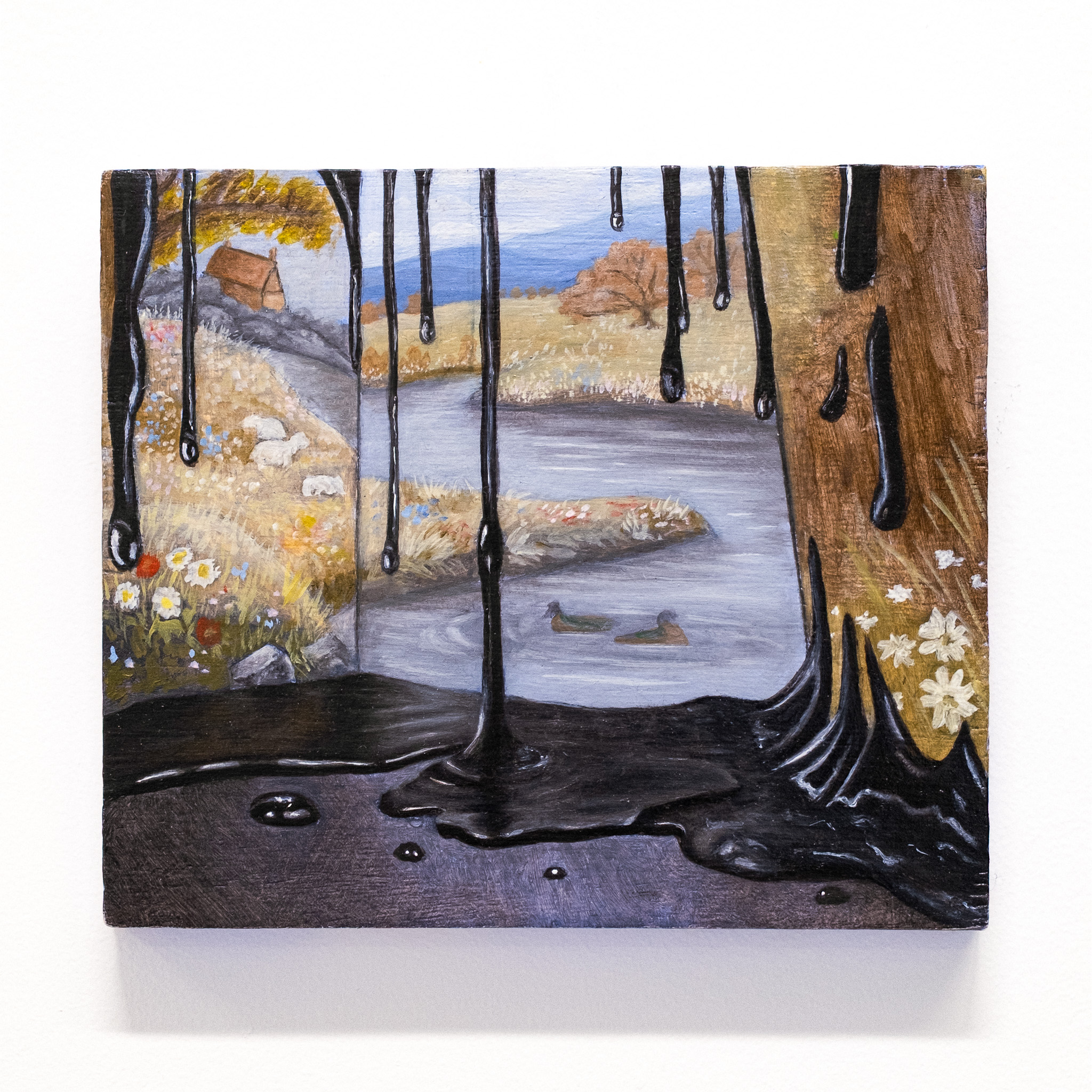 Du 19 mars au 14 mai 2026, la Galerie Nicolas Salloum inaugure sa première exposition : « collant, poisseux, visqueux ». Le titre désigne moins une qualité de matière que la condition contemporaine des formes ; ce qui colle, déborde, persiste, et résiste à toute séparation nette. Les sculptures de Rémi Galtier suspendent l'usage et déploient des volumes organiques, presque érotiques au sens de Bataille, tandis que les paysages de Clara Lou Villechaise transforment la nature en simulacre saturé, traversé de flux visqueux et toxiques, rejoignant les notions de Morton sur l'hyperobjet et de Baudrillard sur le simulacre. Réunies dans une scénographie épurée, ces œuvres d'artistes émergents explorent la friction entre matière et image, entre objet et volume. « Collant, poisseux, visqueux » propose ainsi un espace sensible et critique où le regard ne se contente pas d'observer : il entre en contact, il adhère, il est traversé par l'énergie et l'excès des œuvres.